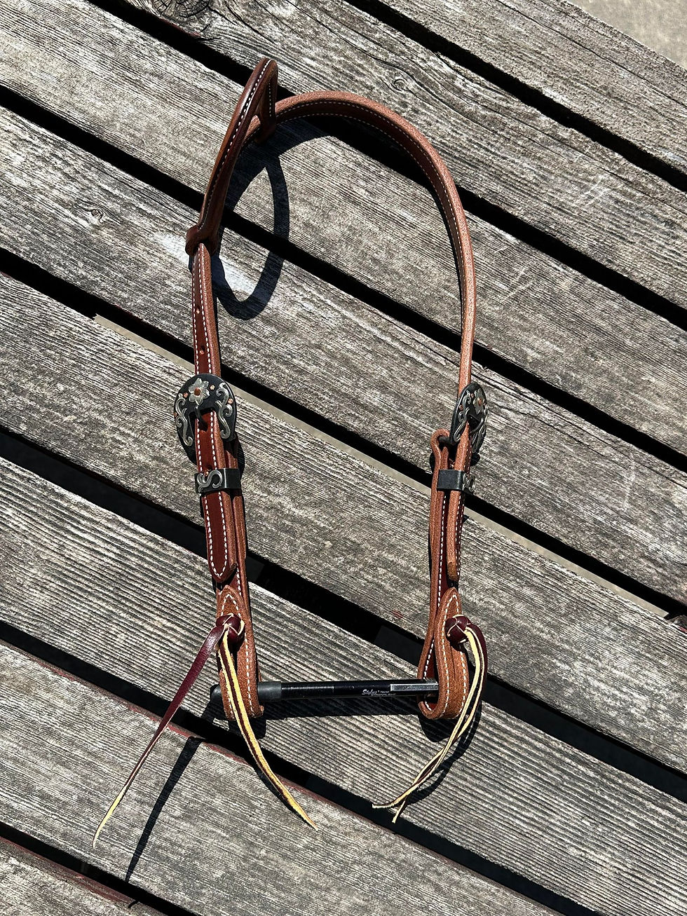 Rectangle Vine Trim w/Buffed Black Steel Single Ear Headstall